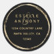 Este adesivo de endereço de retorno apresenta uma estrutura falsa em círculo dourado com uma elegante e uma caligrafia simples com fundo preto.