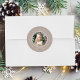 Adicione um toque festivo aos envelopes de férias com as etiquetas de endereço de volta do Floco de Neve Elegante. Os adesivos de endereço de retorno de feriado mostram sua foto cercada por uma coroa de flocos de neve brancos e galhos de pinheiros com fundo esticado. O seu sobrenome e endereço de retorno são exibidos na borda externa dos autocolantes redondos em caracteres brancos.
