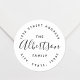 Etiquetas de endereços circulares de retorno personalizadas com nome de família personalizado na caligrafia manual moderna. Excelente para decoração de envelopes, presentes, favores e muito mais!