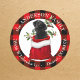 Uma imagem de um cachorro preto do Labrador Retriever espiando-se de um saco de presentes de Natal vermelho e branco é o recurso neste adesivo de endereço de retorno. Atrás dele está um sorvedouro de bagas sagradas e vermelhas. A imagem é emoldurada na xadrez de búfalos vermelho e preto que contém o texto personalizado em branco. Perfeito para cartões de Natal e correspondência.