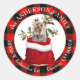 Uma imagem de um cão Terrier bonito do Yorkshire, a sair a espreitar de um saco de presentes de Natal vermelho e branco, é a característica deste adesivo de endereço de retorno. Atrás dele está um sorvedouro de bagas sagradas e vermelhas. A imagem é emoldurada na xadrez de búfalos vermelho e preto que contém o texto personalizado em branco. Perfeito para cartões de Natal e correspondência.