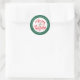 Adicione um detalhe colorido e divertido de feriado aos seus cartões de Natal, convites de festa e outras correspondências durante a temporada de Natal com este selo de envelope de endereço de devolução redondo festivo. O design apresenta o script de caligrafia 'Merry Christmas' e seu endereço de devolução em um fundo verde escuro.