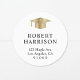 Vinheta de endereço de retorno de graduação branca elegante com um boné de formando dourado e o nome e endereço do formando em tipografia serif clássica.