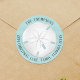 Esta design apresenta um simples adesivo de volta tartaruga com etiqueta de volta com cor d'água azul-oceano-mar, com natureza botânica, litoral náutico-marinho, e um crustáceo-marinho-de-areia tropical-dólar, com uma tipografia de texto em círculo de na moda-tendências, um simples estilo design moderno minimalista, excelente para férias da família tropical litoral, um design único e criativo tropical. etiqueta de endereço de retorno oceânico