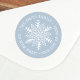 Férias de inverno voltam para a etiqueta de borracha com um floco de neve branco, branco, branco, estilo arte folk e seu nome e endereço em um fundo azul leve e empoeirado. Todas as cores são personalizáveis.