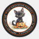 Adesivo Endereço de Retorno Circular JackOLantern Gato Pre
