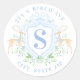 Este adesivo de Natal tem uma crista de rena com uma inicial de monograma azul. Você pode personalizar com seu endereço e endereço iniciais.
