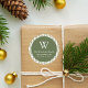 Este adesivo festivo de volta do Natal apresenta um círculo verde-oliva sobre um padrão aquoso de verde-inverno, incluindo pinheiros eververdes e borras sagradas com amoras vermelhas, sobre fundo branco. Personalize o design com o seu nome inicial e familiar monograma na fonte de serif branca, com o seu endereço abaixo em sans serif.
