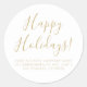O script de Feriados Felizes é simples e elegante e personalizado, etiquetas/autocolantes de endereços de retorno personalizados. Saudação moderna de caligrafia personalizada de script com endereço de negócios de fontes modernas personalizadas ou espaço para mensagens. Texto em ouro falso totalmente personalizável, fundo branco. Elegante, simples design moderna. Excelente para negócios, configurações profissionais e uso pessoal. Estes adesivos são excelente para etiquetas de presentes, adesivos de endereço de retorno, selos de envelope etc.