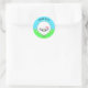 Estas obrigados engraçadas que vocês colam mostram uma ilustração de uma ovelha fofa com um arco rosa. A ovelha branca tem olhos brilhantes e bonitinhos com longas chicotadas. A ovelha está dizendo "Olho Obrigado!" mas você pode personalizar esses adesivos com seu próprio nome ou mensagem. Os adesivos têm cores azuis e verdes claras para um pasto verde que tem um casal de margaridas brancas no fundo. A cerca de madeira é marrom no fundo.