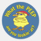 Este é um pintinho de Páscoa ruim, pronto para enfrentar qualquer um que lhe dê uma aparência engraçada. O texto amarelo diz, "O que você está olhando para o PEEP?" e o pintinho de bebê zangado/amarelo tem suas asas dobradas e está vestindo uma bandana vermelha de aparência dura. Também tem uma cicatriz no rosto - provavelmente por entrar em muitas lutas. Isso faria um autocolante humorístico para vestir por Páscoa ou por todo o ano.
