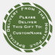 Personalize sua etiqueta de Natal Presentes com este clássico adesivo verde-floresta e branco listrado com hortelã-pimenta com fundo verde da floresta que diz "Entrega Especial do Polo Norte". Por Favor, Entregue Este Presente Para"
