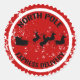 Este adesivo redondo apresenta a Entrega Expressa do Polo Norte com Papais noeis e suas renas. Pode ser usado para decoração em qualquer coisa, como parede, carro, janela ou um presente. Design apresenta cores vermelhas, preto e branco, com um aspecto aflitivo.