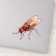 Um autocolante de vaso de mosca extremamente útil. Equipamento de banheiro para melhor posicionamento na urina. Motivação para os machos baterem melhor no banheiro. Reduz significativamente os custos de limpeza urinária. Design de inseto voador assustador em estilo cômico vermelho e colorido.