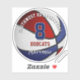 Esta equipe colorido o adesivo de basquete para meninas ou meninos apresenta a imagem realista de uma bola de basquete que tem painéis vermelhos, brancos e azuis alternados - personalize o nome do jogador, número de camisa, nome da equipe e nome do mascote - por katz_d_zynes