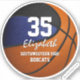 Este adesivo de basquete personalizado apresenta a imagem realista de uma bola de basquete que tem dois painéis coloridos — um azul e um preto — sobre os quais você pode personalizar o nome do atleta e o número de camisola mais o nome da escola ou do clube e o nome do mascote - por katz_d_zynes