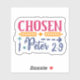 escrito de uma forma estilizada. A imagem tem um tom colorido, alegre e comemorativo.:escolhido, 1 pedro, 2.9