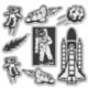 Os autocolantes de contorno espacial de Ricaso - com espaçador, foguetes espaciais, meteoros e muito mais