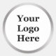 Você pode adicionar o logotipo da sua empresa a este adesivo branco e falso prateado. A borda prateada não é feita de folha.
