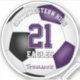 Esta equipe colore adesivo de futebol para meninas ou meninos apresenta a imagem realista de uma bola de futebol que tem painéis roxos, pretos e brancos - personalize o nome do jogador, número de camisa, nome da equipe e nome do mascote - por katz_d_zynes