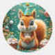 Esquilo encantador vestindo um chapéu festivo, rodeado por decorações vibrantes e cupcakes coloridos num cenário lúdico e alegre.