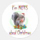 Divirta-se com o Natal com um esquilo fofo segurando uma noz com um arco e vestindo um chapéu de Papai Noel dizendo que sou Loucos sobre o Natal.