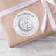 Estamos sobre a Lua! Etiquetas de chá de fraldas personalizadas com o nome e a data do evento. Apresentando nuvens azuis com lua de prata e estrelas.