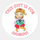 Este presente é para, garota Elf com adesivos para presentes.