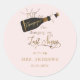 Cliente específico "Estoure o champanhe, estou mudando meu sobrenome!" Adesivo Redondo Clássico. Perfeito para sua despedida de solteira ou chá de noiva. Adicione seu nome e data.