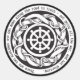 O Símbolo de Roda Dharma é o foco desta design budista branca e negra com fitas intertecidas. A citação de Buda Há dois erros que se pode fazer ao longo do caminho para a verdade - não indo até o fim, e não começando ao redor.