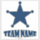 Realce o nome de sua equipe favorita com este adesivo personalizado de esporte projetado com um decalque estelar estilo sheriff que permite personalizar sua equipe favorita ou seu nome pessoal. Este adesivo de nome de equipe pode ser personalizado com qualquer nome de fã ou de equipe desportiva. Este adesivo temático desportivo legal faz um presente de excelente para fãs, jogadores e apoiadores de equipes, da mesma forma.