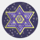 Esses adesivos apresentam um Magen David intricadamente tecido em azul e amarelo em um campo de estrelas menores Funciona bem em redondo ou quadrado. Perfeito para Hanukkah!