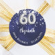 Um adesivo para uma 60ª festa de aniversário. Uma cor azul de fundo marinho com estrelas de falso prata. A cor azul é irregular. Adicione seu nome, texto.