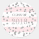 Classe de nome personalizado de adesivos de graduação 2018 com listras cor-de-rosa claro e confetti de efeito de brilho prateado; note que prata é apenas efeito fotográfico.