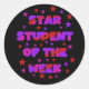 Estudante das Estrelas da Semana com uma estrela e design de texto rosa, vermelha e roxa.