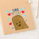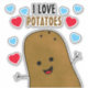 Batata marrom divertida e feliz cercada por corações de amor vermelhos e azuis com Eu Amo Batatas em letras pretas e marrons acima de sua cabeça.