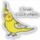 Um desenho animado fofo de um papagaio cacatua amarelo. É mostrado aqui em um adesivo personalizado. Você pode mover o passarinho de estimação para qualquer lugar no adesivo e mudar o "Eu Amo Cacatuas" para qualquer texto de sua preferência. Escolha entre mais tamanhos de adesivos. Este adesivo é um presente divertido para qualquer amante de cacatuas!