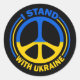 Eu Fico Com A Ucrânia! Mostre amor e apoio às pessoas ucranianas com este design único símbolo de paz. Apresenta azul e amarelo, as cores da bandeira da Ucrânia. Mostrado aqui em autocolantes redondos. Rezem pela paz e parem com a guerra e mostrem aos Ucranianos que os apoiam!