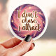 Fique no seu poder com este adesivo Manifest I Don’t Chase I Attract apresentando redemoinhos sonhadores, brilhos e texto de afirmação em negrito. Perfeito para laptops, diários, quadros de visão, garrafas de água e planejadores. Impresso em vinil brilhante premium com cor vibrante e acabamento duradouro. Um ótimo lembrete para confiar no processo — e deixar tudo vir até você. Presente ideal para manifestadoras e pensadores positivos.