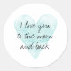 Amo-te à lua e ao Clássico Redondo Clássico. Pintura cardíaca de cor azul-água artística com tipografia escrita à mão. Adicione sua própria citação ou nome personalizado. Vedantes de envelopes personalizados e seladores de festa de casamento para amigos, familiares, convidados, etc. Excelente para casal, parceiro, marido e mulher, namorada e namorado, amigos, família, etc.