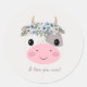 Adesivo Eu te amo, moo! Vaca branca com coroa floral