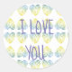 Adoro-te a escrever sobre o Sticker. Corações verdes e azuis desenhando sobre o fundo.