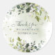 Arranjo elegante de aguarela com folhagem de eucalipto azul, folhagem verde da floresta. Adesivos para evento DIY ou lembrancinha de casamento de agradecimento com fonte de letra manuscrita moderna e divertida em folha de ouro falso e cor de fundo DIY. Copyright © 2016-2020 Bombino Designs™. Todos os direitos reservados.