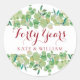Desenhado para combinar com a nossa coleção de 40º aniversário Eucalipto floral. Com folhas de eucalipto delicadas em aquarela, estes autocolantes de aniversário de casamento botânicos elegantes podem ser personalizados com os seus nomes em tipografia vermelha rubi elegante. Desenhado por Thisisnotme©