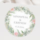 Belo envelope com adesivos de vedação, com cor de água floral rosa eucalipto e folhas de ouro.