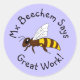 Uma abelha de mel de banda desenhada num fundo roxo. O texto diz "Mx Beechem Says Excelente Work!" e pode ser alterado para um nome/mensagem personalizado. Ideal para professores como recompensas para estudantes.