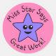 Uma estrela de animação roxa feliz. O texto diz "Miss Star Says Excelente Work!" e pode ser alterado para um nome/mensagem personalizado. Ideal para professores como recompensas para estudantes.