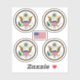 Quatro vinilhetas de corte personalizado com o selo dos Estados Unidos da América (EUA), com uma águia careca e uma bandeira americana; e um autocolante com a bandeira americana