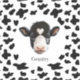 Rosto e texto elegante de vaca branca e negra. O texto pode ser personalizado para aniversário ou qualquer outro evento. Ideal para amantes do país!