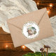 Uma doce fada de floresta fica do lado de fora de sua casa de cogumelos, entre os cogumelos, a floresta e os animais da floresta, à medida que a verde compra uma fita graciosamente de ambos os lados desta coleção composta de designs compostos do Partido primeiro aniversario Fada Primeira, por Designs Holiday Hearts. Aqui, temos o nosso design de selagem de envelope de devolução.